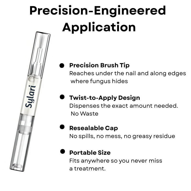 The Precision Pen Applicator delivers treatment deep under and around nail edges in the precise sequence needed to penetrate where fungus actually lives.